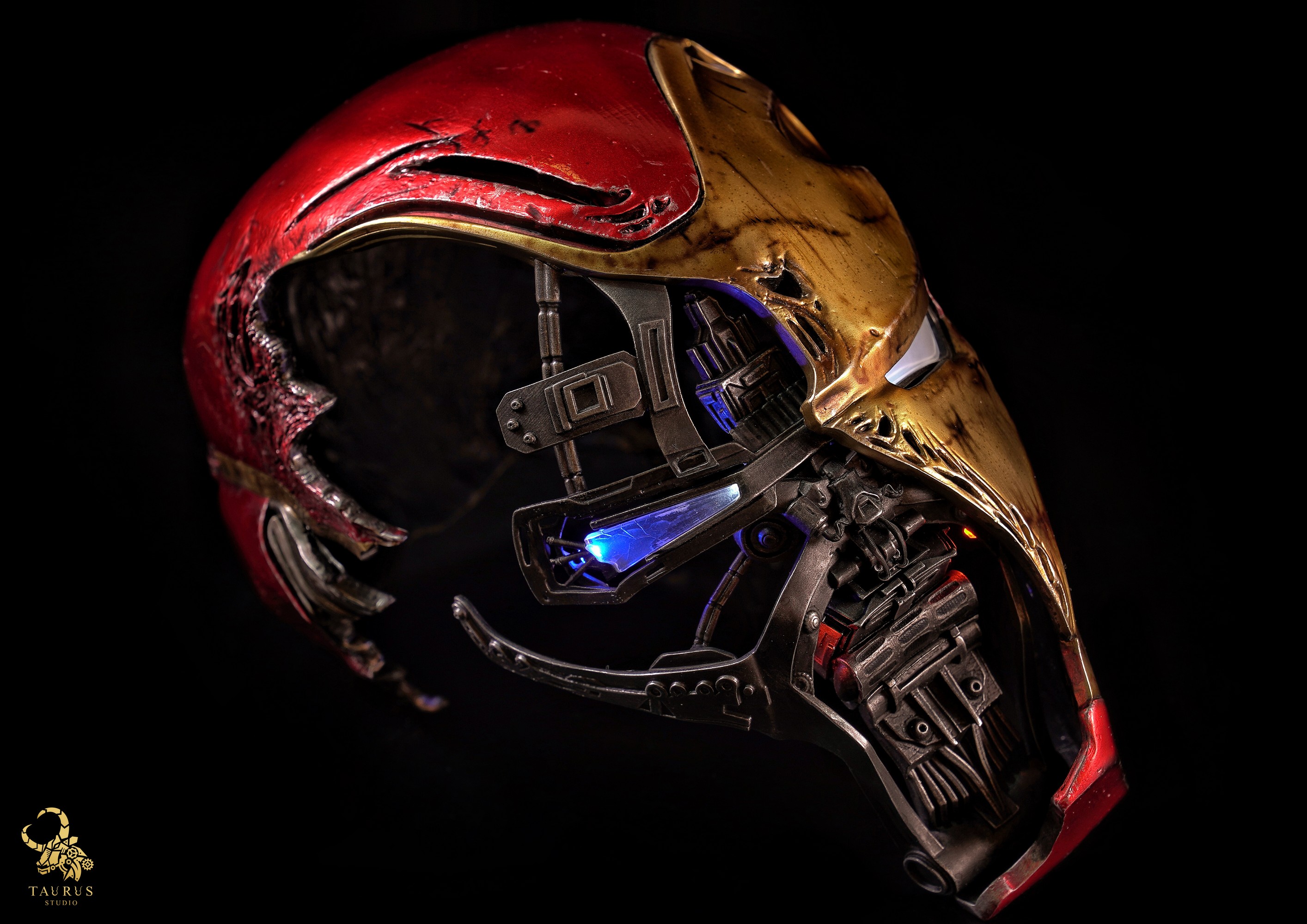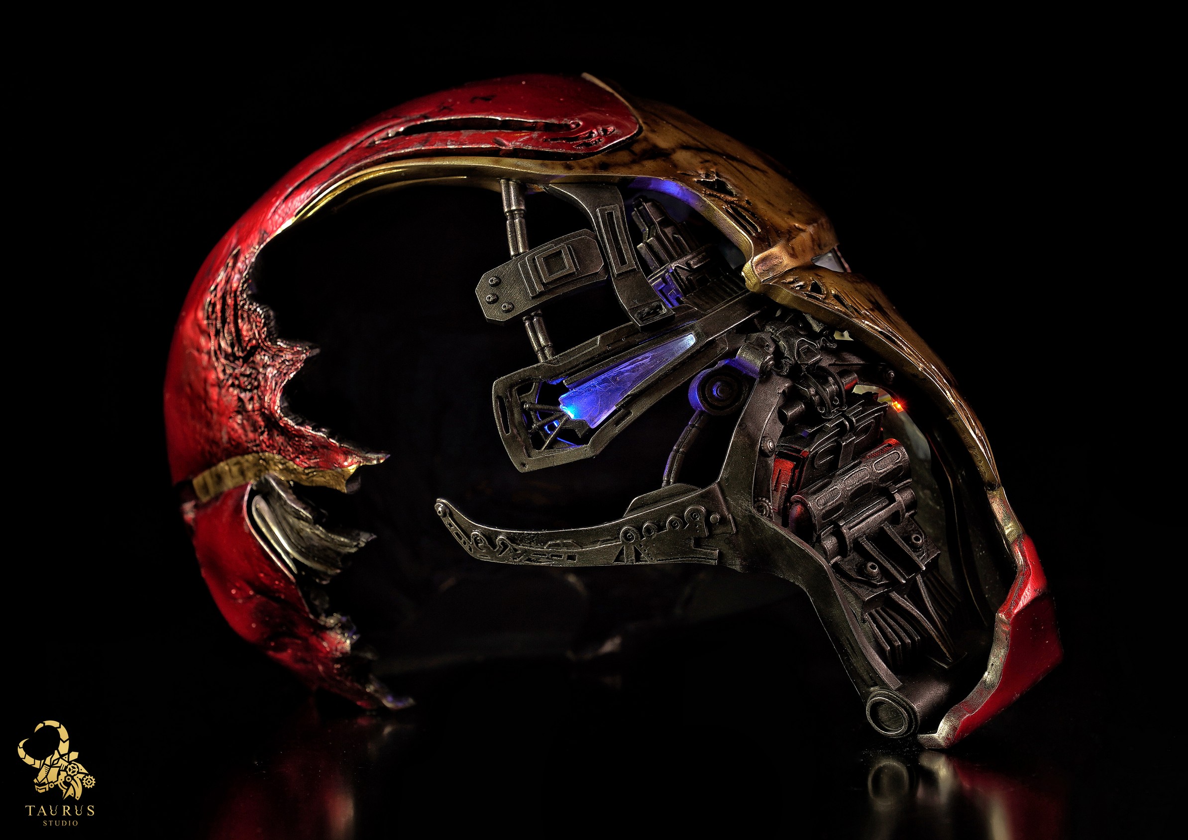 L’elmo è realizzato in resina con effetti a luce LED ed effetti sonori con la voce di Tony Stark registrata.